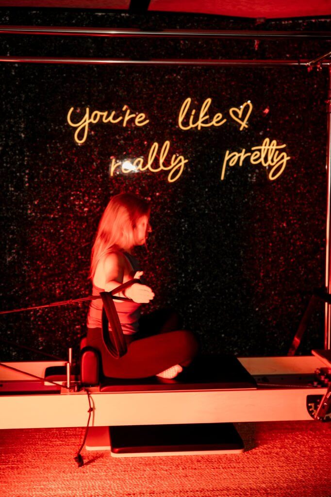 Reformer Pilates with integrated red light therapy.